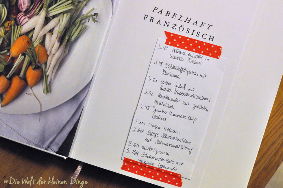 die erste Woche meiner Kochbuch-Challenge ist geschafft. Ich bin ein bisschen stolz auf mich, es gab jeden Tag was vernünftiges zu Essen, und die Planlosigkeit in meinem Kopf und in meinem Kühlschrank hat gut abgenommen.